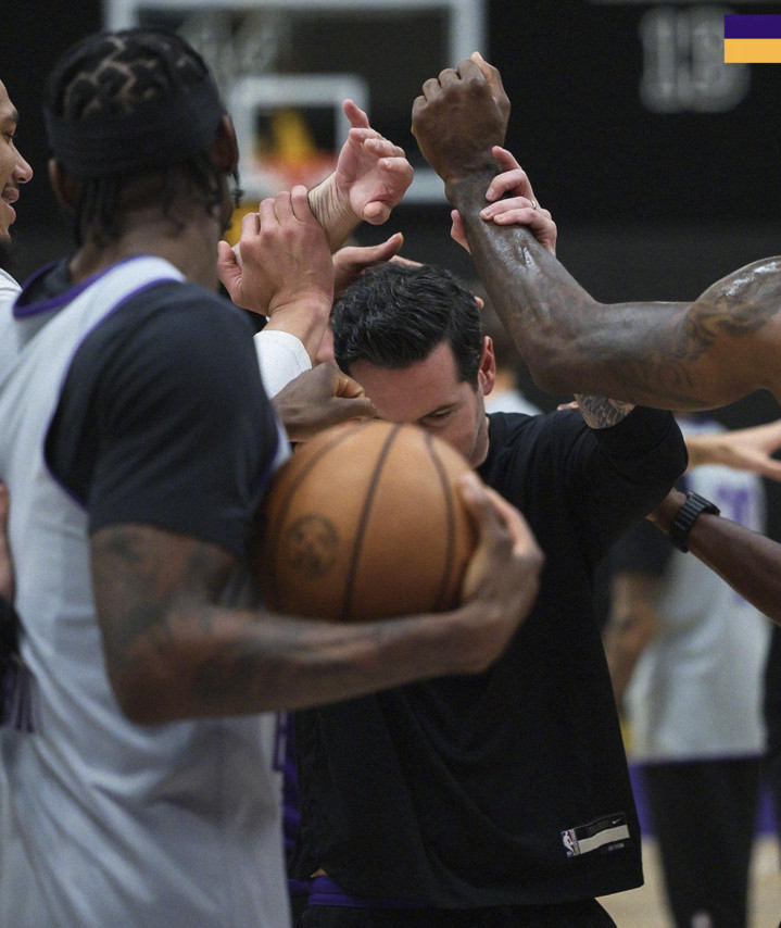 在训练结束后,全队聚在一起,加油打气,有信心拿下明天的G5,送走火箭!